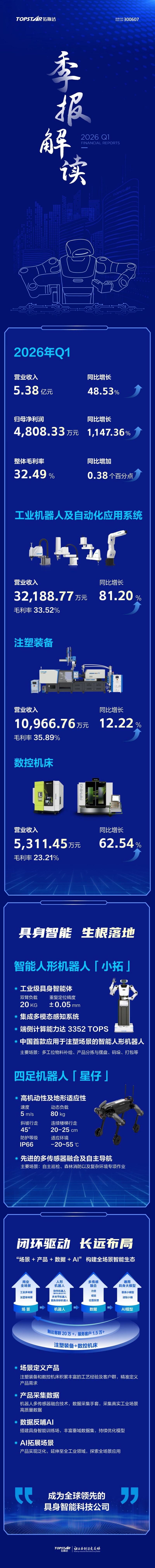 拓斯达Q1净利同比增逾11倍 毛利率超去年水平